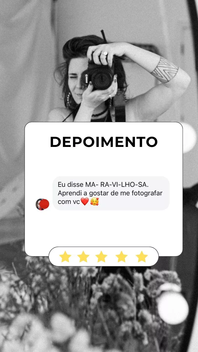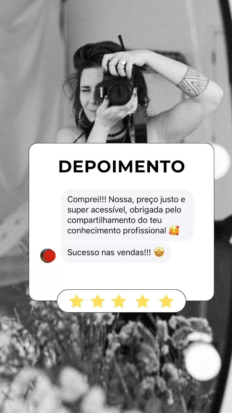 No meu E-BOOK, vou te ensinar de forma simples e prática a configurar o celular, entender o básico da fotografia, aprender poses, descobrir meus segredos de fotógrafa de mulheres — e ainda ter acesso a 300+ poses para transformar suas fotos e a forma como você se vê!