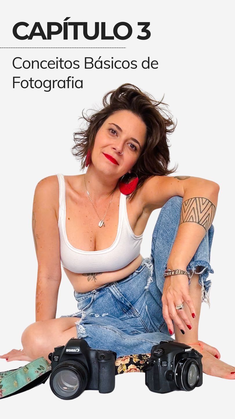 São 7 capítulos de teoria e técnica de fotografia, a como posar, os meus segredos na hora das poses, como configurar sua câmera e muito mais para arrasar nas fotos.